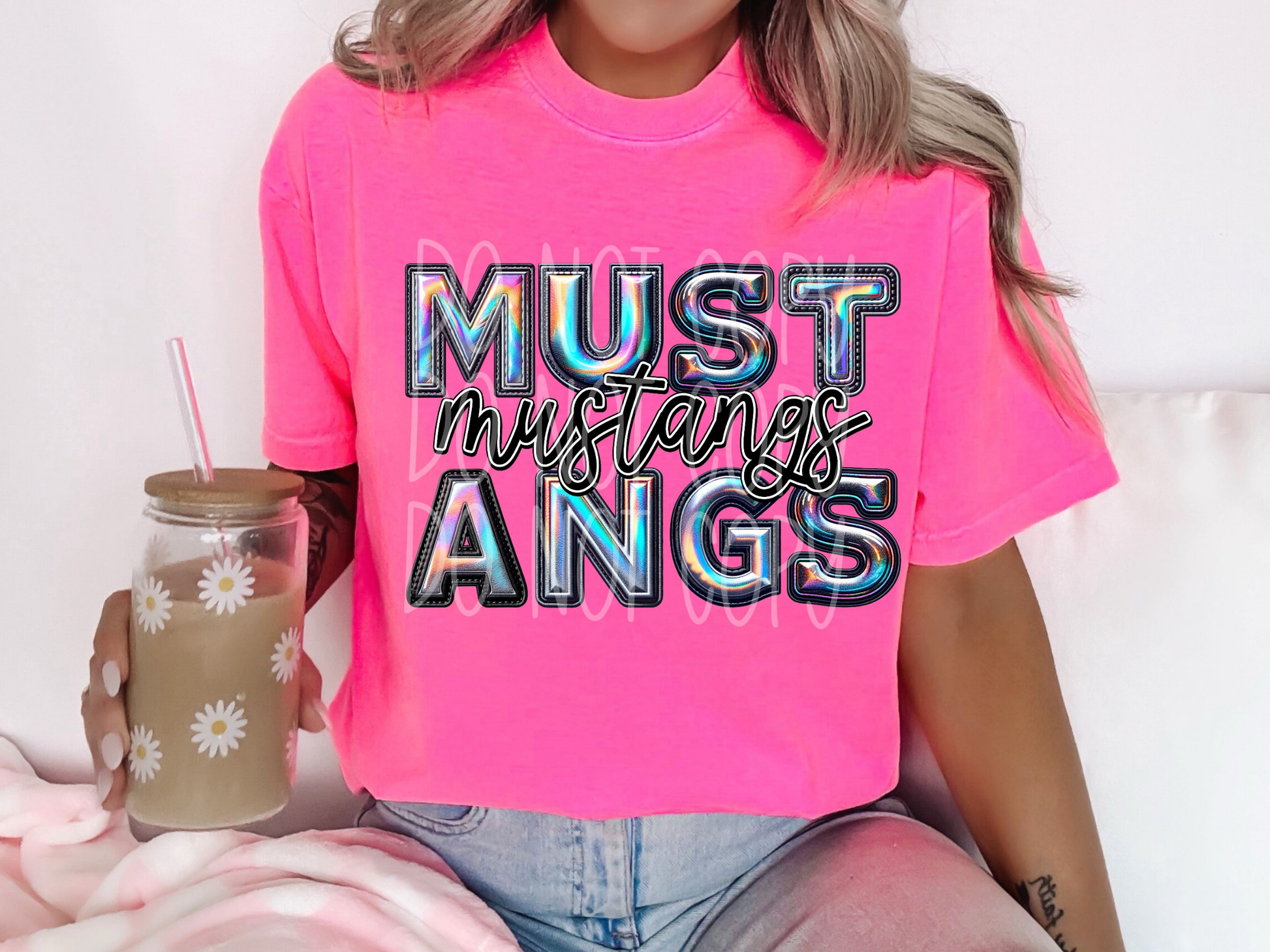 Mustangs Holographic School Mascot DTF Transfer - TED1692