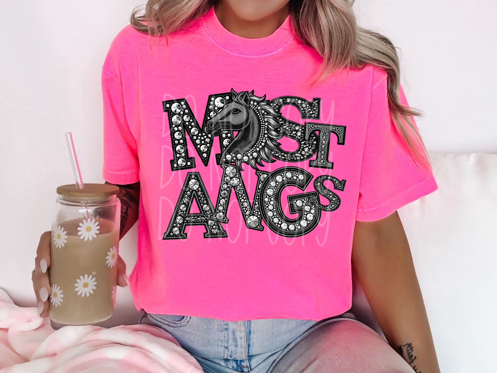 Mustangs School Spirit Mascot Rhinestone DTF Transfer - TED1572