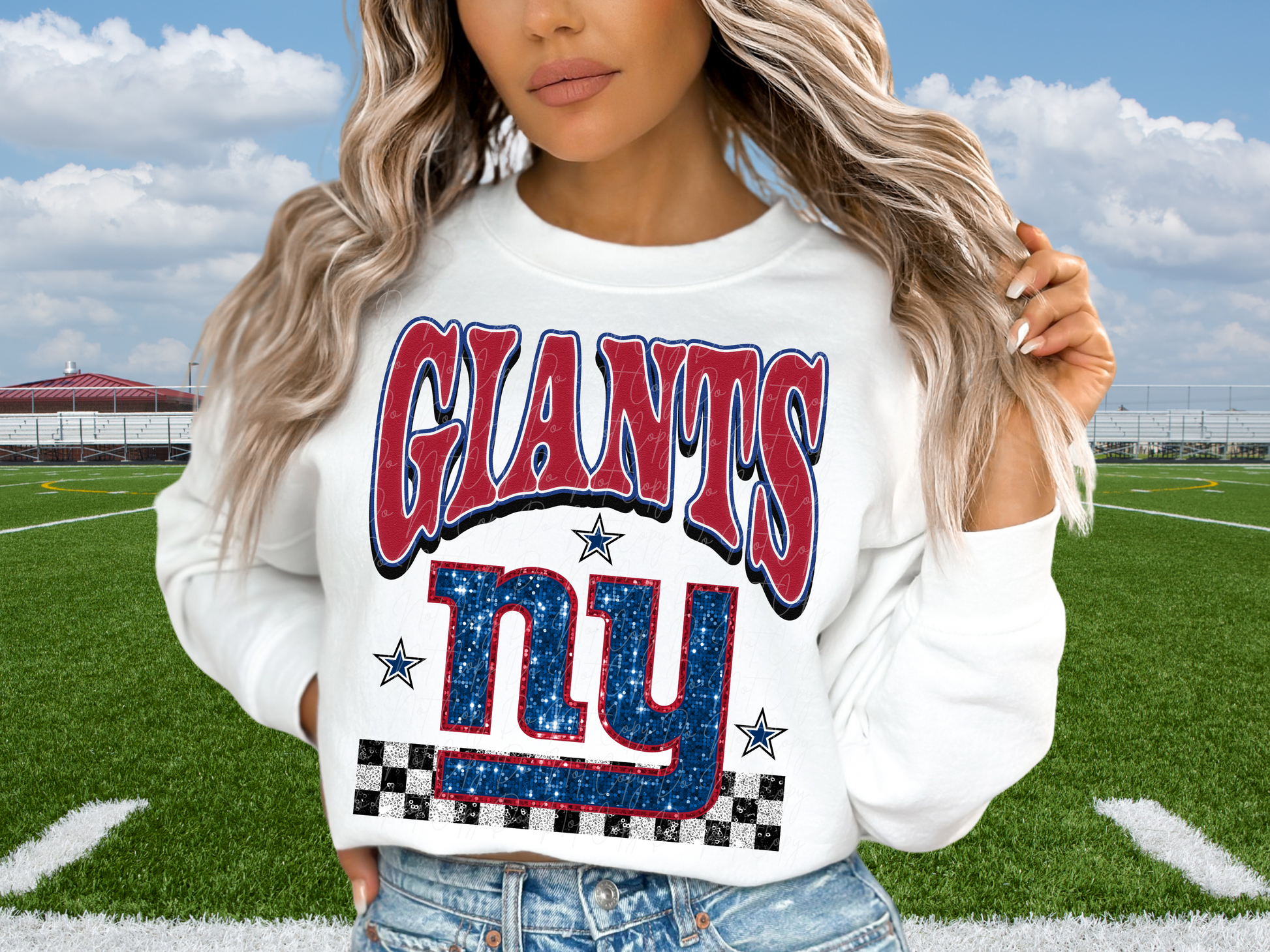 New York Giants Glitter Sequin Football DTF Transfer - KPI1889